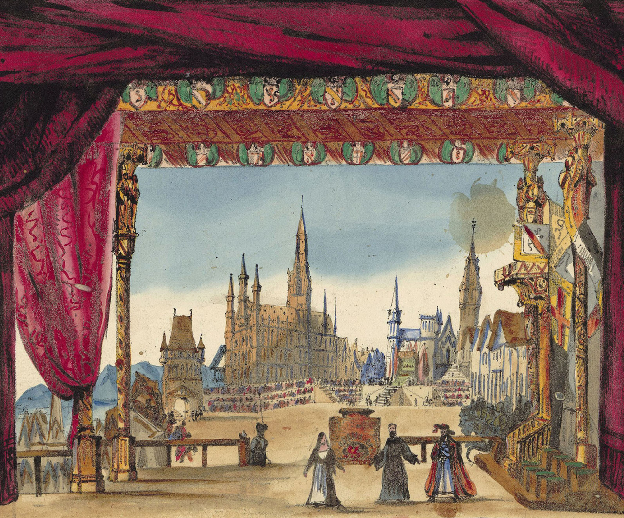 Set design for Act 5 of the opera La Juive by Fromental Halévy, for the original 1835 production at the Paris Opera. (Bibliothèque nationale de France)