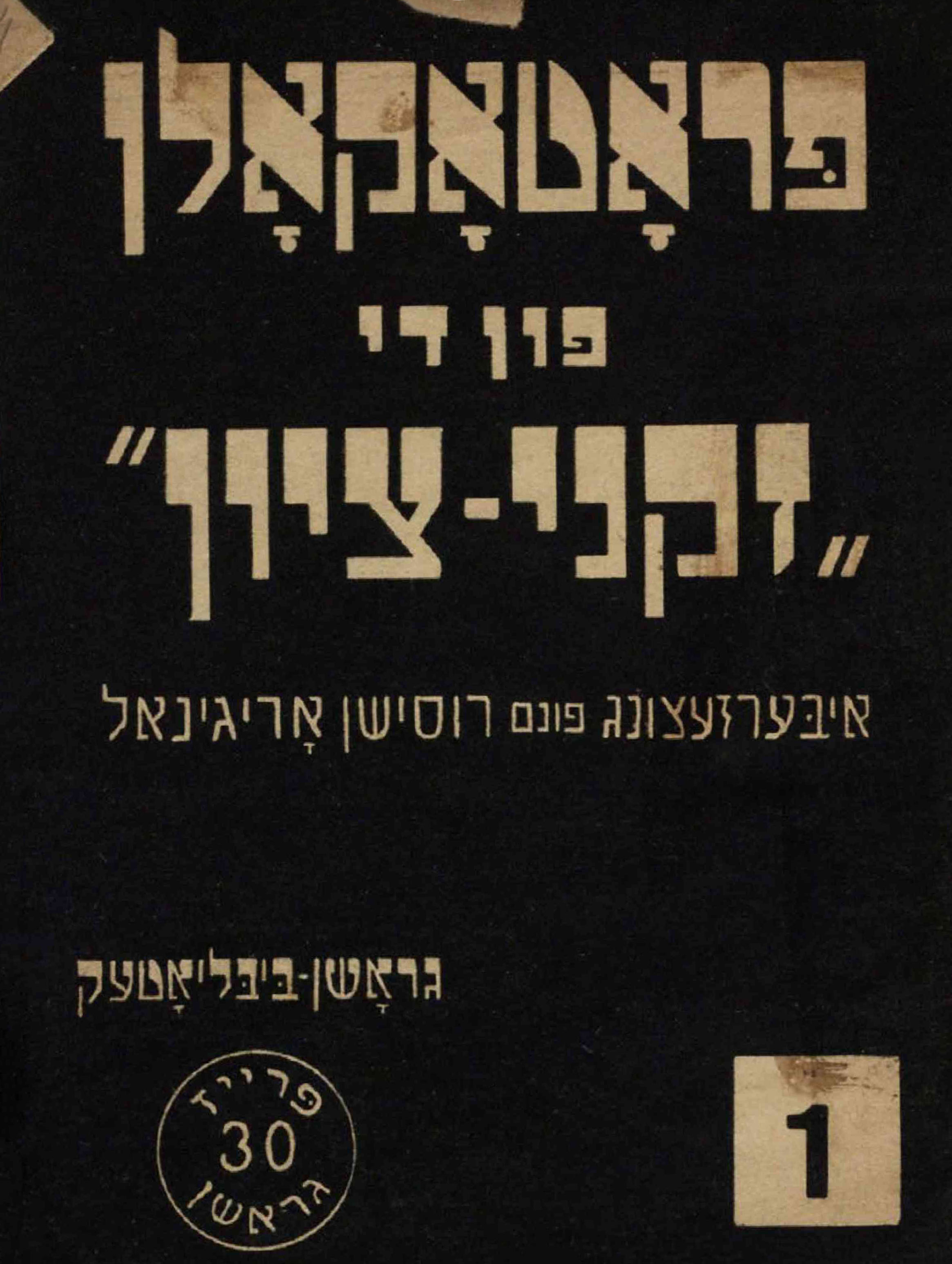 Between 1933 and 1935, a trial was held in Bern against members of the Swiss extreme right-wing National Front who had distributed “The Protocols of the Elders of Zion,” a widely disseminated antisemitic publication that spread lies about Jews. The real target of the Jewish organizations that initiated the trial, however, was the pamphlet itself, its origin, its dissemination, and its use in Europe's fascist movements.