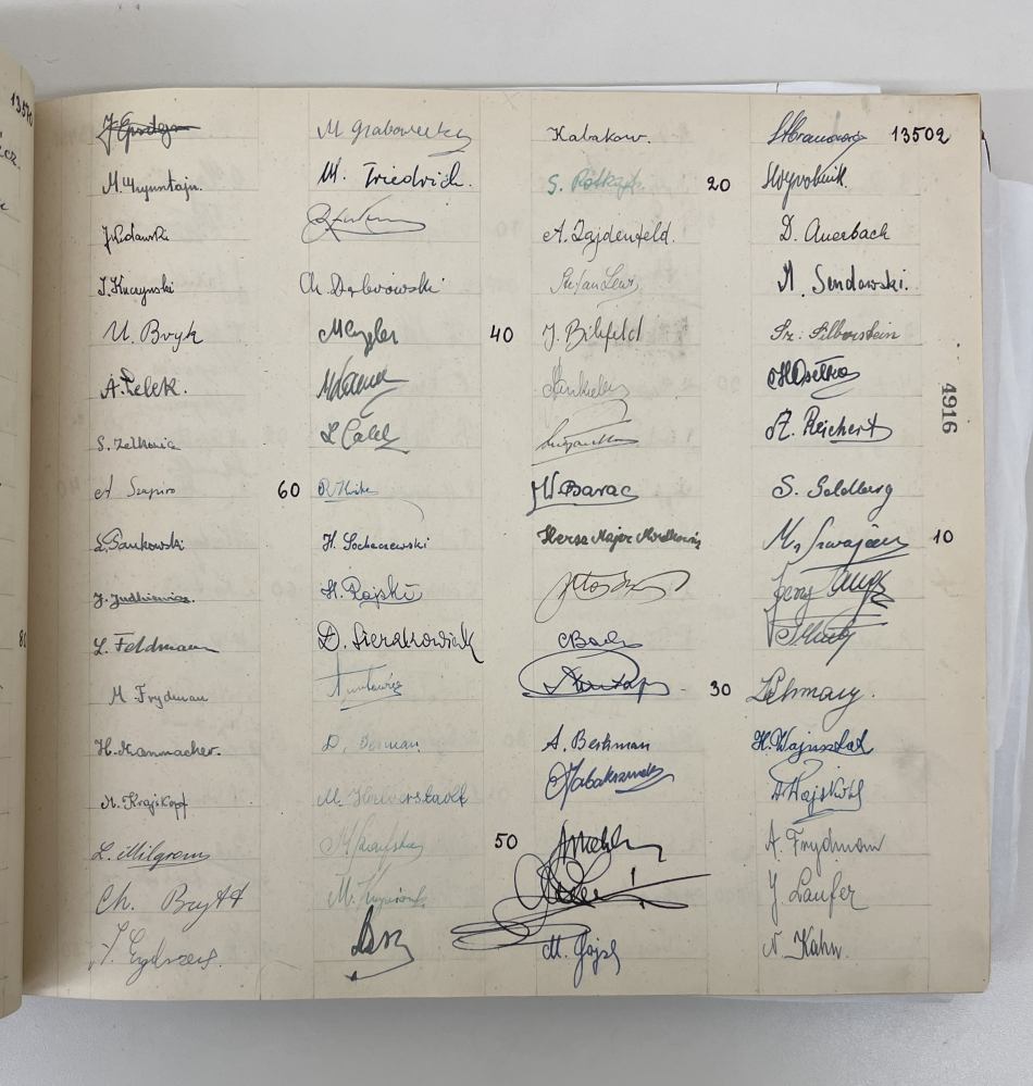 When Turski visited YIVO in 2016, he found his own signature in the Łódź Ghetto “Book of the Children,” a hand-painted book given to Judenrat head Mordechai Chaim Rumkowski as a gift for Rosh Hashanah of 1942. The book contains the signature of every school child in the ghetto—nearly 14,000 in total. Approximately 200 children survived. Upon finding his own signature in the book, he nearly fainted when he saw that the signature of his best friend, Dawid Sierakowiak was next to his. Sierakowiak, sadly, did not survive the war.